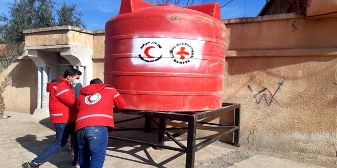 قام مشروع إدارة المياه والتأهيل في فرع منظمة الهلال الأحمر العربي السوري بتركيب 50 خزان مياه شرب إضافياً سعة 5 أمتار مكعبة في أحياء مدينة الحسكة لتأمين مياه الشرب للأهالي.
