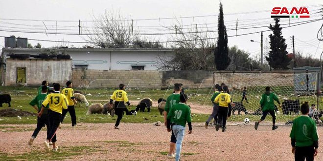 أمام باب دارها جلست السيدة المسنة غازية الناصر تستمتع بدفء الشمس بعد أيام ماطرة تراقب المساحات الخضراء المزروعة ولعب الأطفال وضجيج الحياة بكل تفاصيلها ترافق نظراتها حركة الخراف أمامها وصخب الشبان يلعبون كرة القدم في ساحة واسعة تفصل بين المنازل.