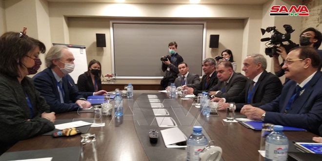 كما التقى وفد الجمهورية العربية السورية مبعوث الأمين العام للأمم المتحدة الخاص إلى سورية غير بيدرسون حيث جرى استعراض الأوضاع في سورية.