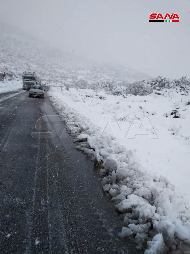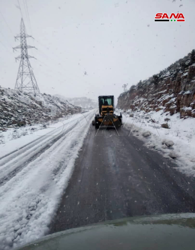 وبين المهندس محمد مشعل مدير الخدمات الفنية في حماة في تصريح لمراسل سانا اليوم أن المحاور الطرقية المغلقة جراء تراكم الثلوج في مجال منطقة مصياف تشمل طريق (شيحة مصياف – الرصافة) وطريق (عين الشمس – البيرة – وطريق -القدموس – حيلين) حيث تعمل آليات مديرية الخدمات الفنية على فتحها مشيراً إلى أنه تم إرسال عدد من آليات الكريدر الثقيلة لتنفيذ أعمال قشط الثلوج المتراكمة والعمل على فتح الطرقات وتأمينها وتمكين المركبات من السير عليها مجدداً.