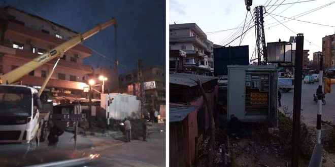 ركبت ورشات الشركة العامة لكهرباء حمص مركز تحويل مسبق الصنع قرب مشفى النهضة بحي وادي الذهب.