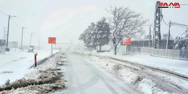 وفى محافظة القنيطرة كل الطرق سالكة ما عدا طريق جباتا الخشب -حضر عين التينة غير سالكة بسبب تراكم الثلوج وتشكل الضباب.