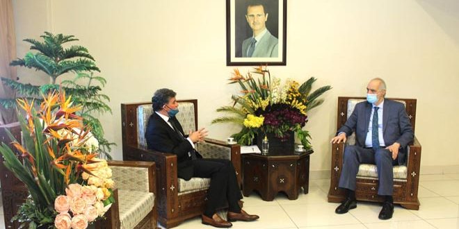 بحث نائب وزير الخارجية والمغتربين الدكتور بشار الجعفري مع مدير الدائرة السياسية لمنظمة التحرير الفلسطينية السفير أنور عبد الهادي تطورات الأوضاع في الأراضي الفلسطينية المحتلة والمنطقة.