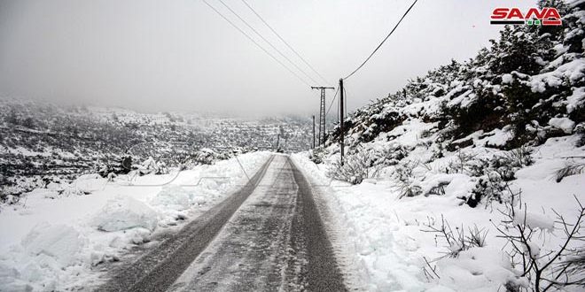 وبينت إدارة المرور أن كل الطرق في محافظة حمص سالكة ماعدا طريق شين بيدر رفيع قرب علي وطريق مقلس المزرعة ظهر القصير غير سالكين بسبب تراكم الثلوج.