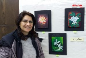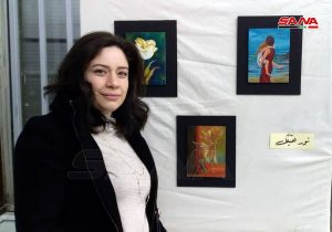 واختارت مدرسة اللغة الإنكليزية ديمه إبراهيم أن تجسد الحب بأسلوب تعبيري من خلال أربع لوحات مرسومة بالألوان المائية مستخدمة في إحداها الخط العربي في حين نوعت أفكارها بلوحاتها الأخرى واصفة وجودها مع زميلاتها منذ عام 2017 بالتجربة الرائعة لتأكيد وجود المرأة السورية في الفن ولتقدم في كل مكان جزءاً من روحها ومحبتها.
