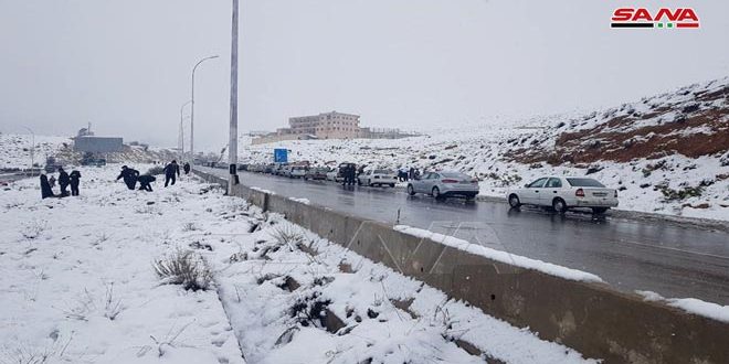 وأوضحت إدارة المرور في نشرتها ظهر اليوم والتي تلقت سانا نسخة منها أن جميع الطرق في محافظة ريف دمشق سالكة عدا طرق حينة خربة السودا وعرنة الريمة بقعسم وعين الشعرة حينة جميعها سالكة بصعوبة جراء تساقط الثلوج وتشكل الجليد.