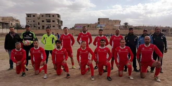 ومثل فريق الرجال كل من اللاعبين محمد نور العبوش وقاسم العبوش وعبد الباقي الرحباوي وجمعة الخاطر ورمضان الفريح وخالد الشرابي وعناد المغير ورواد العلي وعبد الله العلي وقيس الحسين وعدنان الحمود واحمد العكلة وصالح الرحباوي وصالح الخلف واحمد الملاح وسعيد داموك ووعد العلي واحمد العبد بإشراف المدرب بشار الفريح ومدربي الحراس احمد الخليف واحمد الخضر والإداريين معتز فريح واحمد الكردوش.
