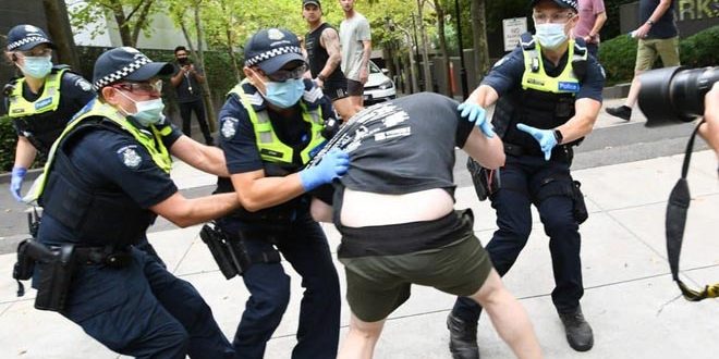 اعتقلت الشرطة الأسترالية عشرات الأشخاص خلال احتجاجات عمت أرجاء البلاد رفضاً للتطعيم بلقاح كورونا.