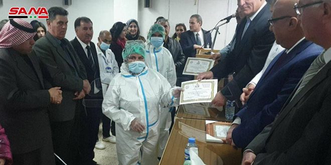 وعبر عدد من المكرمين عن تقديرهم لهذه اللفتة مؤكدين أن ما تقوم به الكوادر الطبية من أطباء وممرضين خلال هذه الفترة هو واجب تجاه أبناء وطنهم لتقديم الرعاية للمصابين والحالات المشتبه بإصابتها.