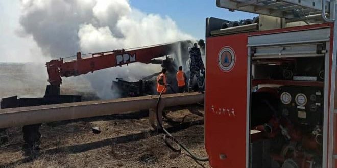 وقعت أضرار مادية بآلية ثقيلة جراء انفجار لغم من مخلفات تنظيم “داعش” الإرهابي في محيط بلدة المريعية بريف دير الزور الشرقي.