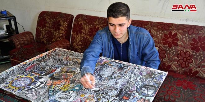 أعمال تشكيلية تنبض بالمشاعر والأفكار والرموز الإنسانية وسمت تجربة الفنان الشاب زين العابدين إبراهيم شباني الذي وجد في هذا الفلك الإبداعي ملاذاً يفرغ فيه طاقاته ويطرح عبره الرؤى التي أوقدتها مشاعر وانفعالات تختلط بالفرح تارة وبالحزن تارة أخرى لتشكل مجتمعة عناوين مرهفة لتجارب حياتية عميقة رغم حداثة عمرها.