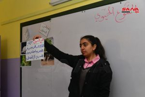 وخلال إعطائها درس العلوم في ثانوية الشهيد ياسر عثمان بالحميرة في منطقة النبك الذي تعتمد فيه المعلمة عبدو على جهاز عرض البيانات ووسائل علمية ودروس تشريح “أسماك وأرانب وحمام” حسب المقررات الدراسية لكل صف تحدثت لمندوبة سانا عن أهمية المشاريع في تعميق التعلم لدى الطلاب وتحفيزهم ما يعزز تعلمهم وينمي قدراتهم العقلية.