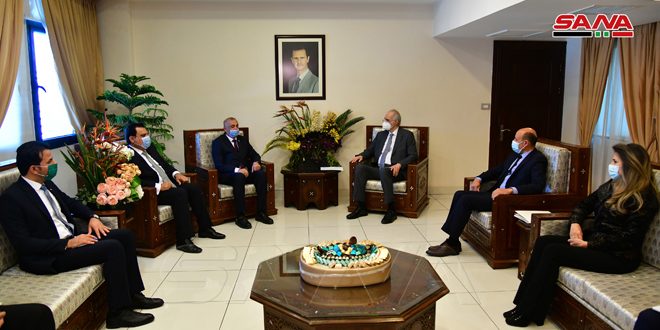 بحث الدكتور بشار الجعفري نائب وزير الخارجية والمغتربين اليوم مع المستشار ياسين شريف الحجيمي القائم بأعمال السفارة العراقية في دمشق والوفد المرافق من اتحاد غرف التجارة برئاسة عبد الرزاق الزهيري رئيس اتحاد غرف التجارة العراقية آخر تطورات الأوضاع السياسية في سورية والعراق.