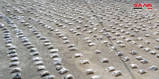 ضبطت الجهات المختصة كميات كبيرة من المواد المخدرة على الحدود الجنوبية من محافظة السويداء كانت معدة للتهريب إلى الأردن.