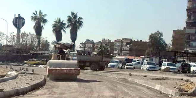 تنفذ ورشات محافظة دمشق أعمال تأهيل وصيانة لعدد من المرافق العامة في المدينة وأحيائها من ساحات وأرصفة ومنصفات وترحيل أنقاض وأتربة ضمن خطتها للنهوض بالواقع الخدمي والطرقي.