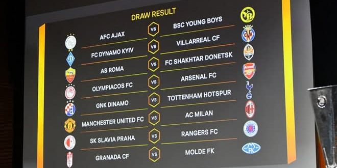 وبحسب شبكة سكاي سبورتس فإن قرعة دور الـ 16 من بطولة (اليوربا ليغ) أسفرت عن وقوع مانشستر يونايتد الإنكليزي في مواجهة قوية ضد ميلان الإيطالي في أقوى مباريات هذا الدور فيما يواجه أولمبياكوس اليوناني نظيره أرسنال الإنكليزي.