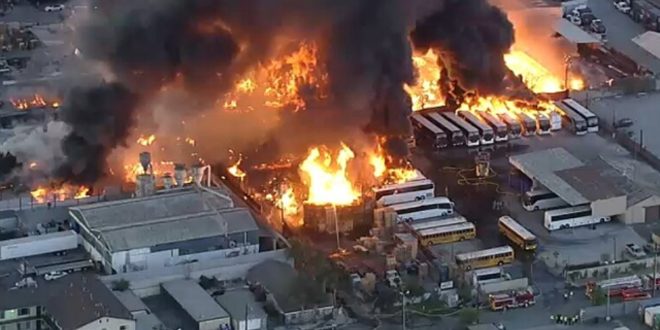 اندلع حريق ضخم في المنطقة الصناعية بمدينة كومبتون بولاية كاليفورنيا وفقاً لما ذكرته وسائل إعلام أمريكية اليوم.