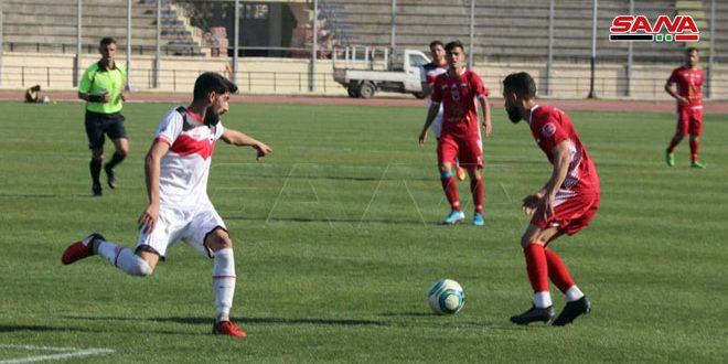 من مباراة الاتحاد والوثبة على ملعب الحمدانية بحلب ضمن الجولة18 من الدوري الممتاز