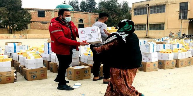 وزع فرع منظمة الهلال الأحمر العربي السوري في محافظة الحسكة 26185 سلة غذائية للأسر المحتاجة منذ بداية العام الجاري.