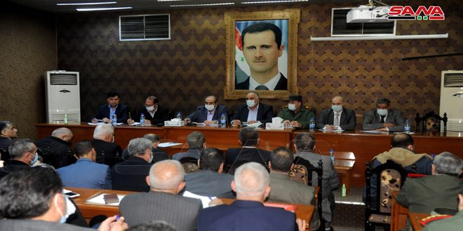 شكل الواقع التمويني في مدن وبلدات محافظة ريف دمشق من ضبط توزيع مادة الطحين وفق الحاجة الفعلية ومتابعة عمل المعتمدين في توزيع مادة الخبز والتصدي لحالات التلاعب والتهريب للدقيق التمويني والمحروقات بشكل صارم محور الاجتماع الذي عقد اليوم في محافظة ريف دمشق برئاسة وزير التجارة الداخلية وحماية المستهلك طلال البرازي ومحافظ ريف دمشق المهندس معتز أبو النصر جمران.