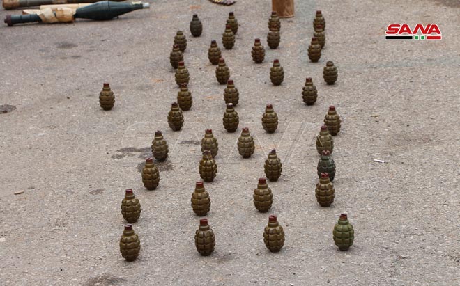 ضبطت الجهات المختصة في درعا أسلحة خفيفة ومتوسطة وذخائر متنوعة من مخلفات الإرهابيين في الريف الغربي من المحافظة.