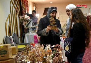 طارق الدروبي أوضح أنه يشارك بالنحاسيات المستخدمة لتزيين البيوت والمرايا وأجهزة الإنارة والساعات وغيرها فيما بينت لينا الصاج طالبة ماجستير كيمياء أنها تشارك من خلال شرائط الساتان والورود التي تصنعها لمختلف المناسبات.