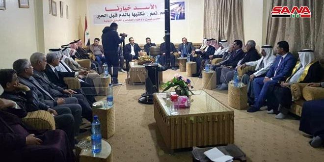 وبين رئيس مجلس شيوخ ووجهاء القبائل السوري الشيخ ميزر المسلط في تصريح لمراسل سانا أن المجلس “قدم مجموعة من الثوابت الخاصة التي يعمل في إطارها والتي تتمحور حول تأكيد الانتماء لسورية واحدة أرضاً وشعباً بقيادة السيد الرئيس بشار الأسد والوقوف مع الجيش العربي السوري في حربه على الإرهاب ورفض كل الطروحات الانفصالية تحت أي عنوان”.