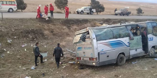 توفي خمسة أشخاص وأصيب أكثر من عشرين آخرين مساء اليوم إثر تدهور حافلة “شبه بولمان” بالقرب من مدينة قارة على طريق دمشق حمص.