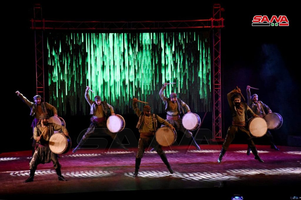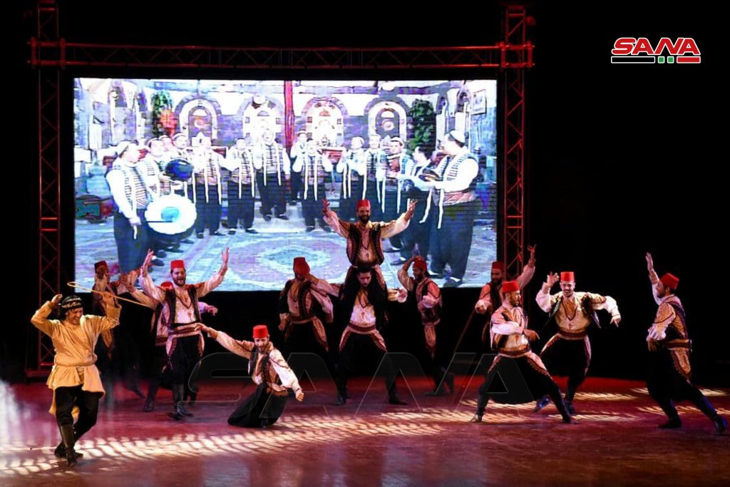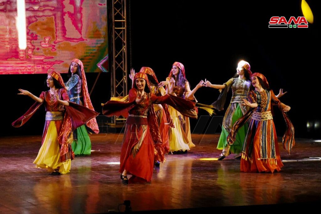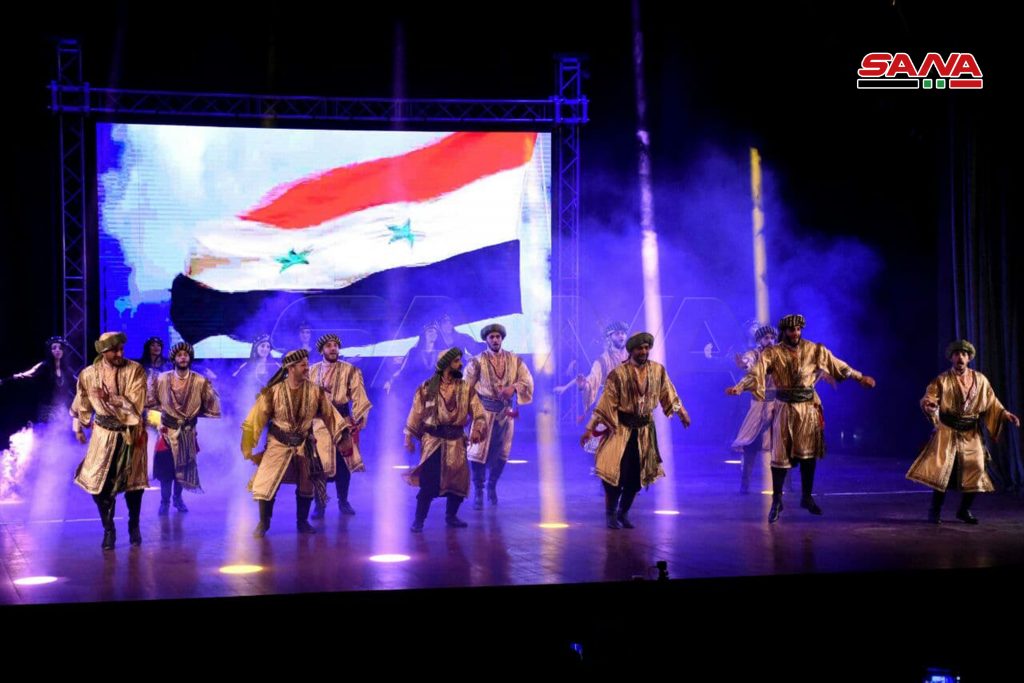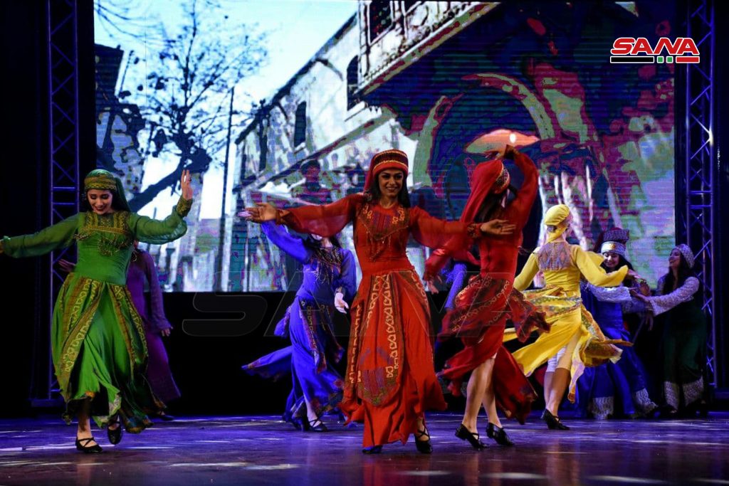 احتضن مسرح قصر الثقافة بحمص فرقة جلنار للمسرح الراقص التي ادت لوحات فلكلورية راقصة ممزوجة بومضات شعرية تتغنى بجمال وعراقة سورية.