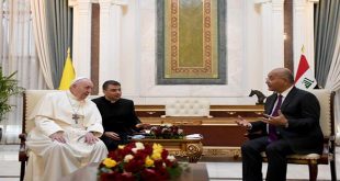 وقال البابا فرنسيس على هامش زيارته الراهنة للعراق وبعد لقائه عدداً من المسؤولين العراقيين إن “الدعوة الحقة للدين تدعونا للتمسك بقيم السلام والعيش المشترك” مشدداً على ضرورة الخروج من محنة الإرهاب الذي جلب الموت والدمار للمنطقة.