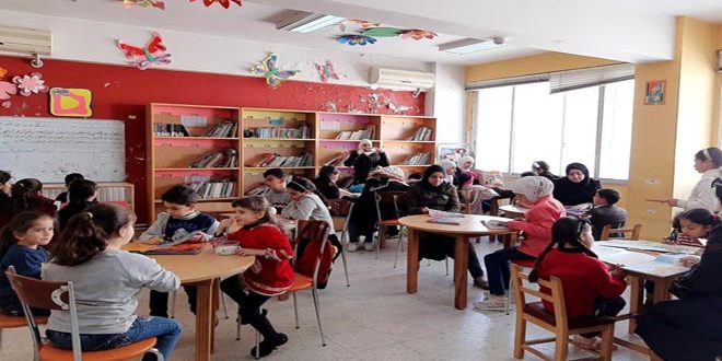 ثلاثون طفلاً بأعمار تراوحت بين خمس سنوات واثنتي عشرة سنة دفعهم حبهم للمطالعة وقراءة قصص الصغار الى مكتبة المركز الثقافي بكفرسوسة للمشاركة في نشاط تفاعلي للتشجيع على القراءة.