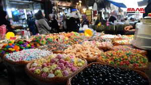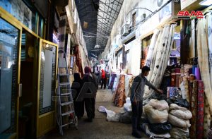 سانا التقت بالعم أبو صالح الذي تحدث عن أنواع السلع الموجودة بالسوق مبيناً أنها منتجات نسيجية مميزة مثل الأقمشة الحريرية والعباءات الرجالية والكوفيات والطرابيش والشراشف والديباج والمناشف والستائر إضافة الى محلات بيع البن والمكسرات والحبوب والسمن العربي والزيوت والبهارات ومحلات العطارة والأعشاب ومحلات صنع وبيع المشغولات النحاسية والموزاييك والمصنوعات والمشغولات الشرقية الدمشقية الشهيرة.