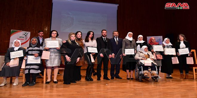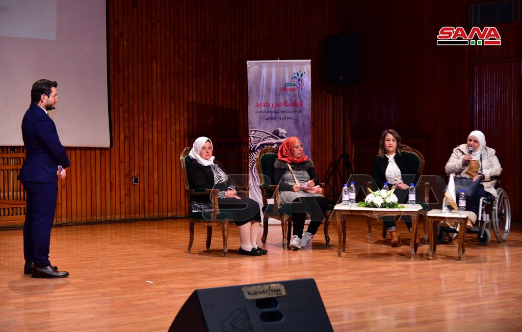 بمناسبة اليوم العالمي للمرأة كرمت جمعية جذور للتنمية اليوم 9 نساء مميزات استطعن تجاوز الصعاب وتحقيق احلامهن بمختلف المجالات وذلك خلال فعالية بعنوان “فراشة من حديد” في المركز الثقافي بالمزة.