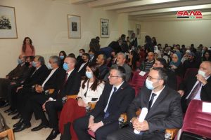 حضر الفعالية رئيس جامعة دمشق الدكتور محمد يسار عابدين وأمين فرع جامعة دمشق لحزب البعث العربي الاشتراكي الدكتور خالد حلبوني ومعاون وزير الثقافة توفيق الإمام وعبير الجرف مديرة إدارة أمريكا في وزارة الخارجية والمغتربين وعدد من رؤساء وممثلي البعثات الدبلوماسية المعتمدين بدمشق.