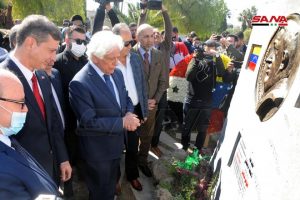 أحيت جامعة دمشق وسفارة جمهورية فنزويلا البوليفارية بدمشق اليوم الذكرى السنوية الثامنة لرحيل الزعيم الفنزويلي اوغو تشافير حيث تم تدشين النصب التذكاري الجديد الخاص به في حرم الجامعة ووضع إكليل من الزهور عليه.