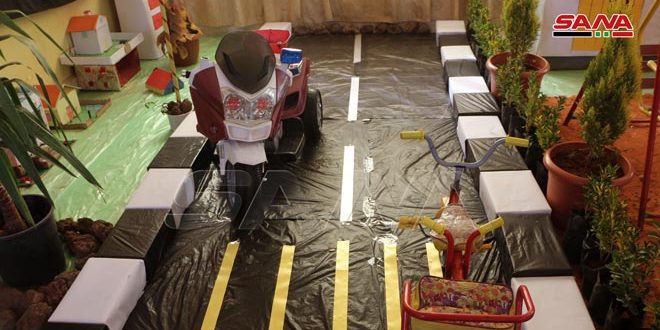 وأشارت مسالمة إلى أن الحديقة تضم مجسماً يصور الشوارع والساحات وإشارات المرور وحركة الناس والآليات.