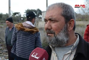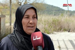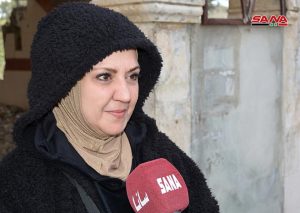 خالدية يوزباشي التي وصلت صباح اليوم إلى قرية الريانة قالت لمراسل سانا “لا أستطيع وصف فرحتي.. نحن ممتنون للجيش العربي السوري والسيد الرئيس بشار الأسد بعودة الأمن والأمان إلى قرانا واهتمام الدولة بإعادة البنى التحتية والخدمات”.