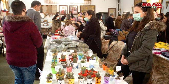 المعرض الذي تستضيفه صالة كنيسة القديس جاورجيوس للروم الأرثوذكس بمدينة السويداء بمناسبة يوم المرأة العالمي تقدم خلاله نحو 22 سيدة على مدار ثلاثة أيام أعمالا تعكس مهارتهن اليدوية وجوانب الإبداع الفني لديهن.