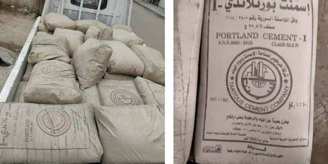ضبطت عناصر مديرية التجارة الداخلية وحماية المستهلك في اللاذقية اليوم ثلاثة مستودعات تحتوي على أكثر من 5 أطنان من مادة الإسمنت المدعومة معدة للبيع في السوق السوداء بطريقة غير مشروعة.