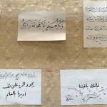 لوحات متنوعة في خطوط الرقعة والديواني والنسخ ضمها معرض الخط العربي الذي احتضنه المركز الثقافي العربي في كفرسوسة لـ 17 طالباً وطالبة تخرجوا من دورات الخط في المركز.
