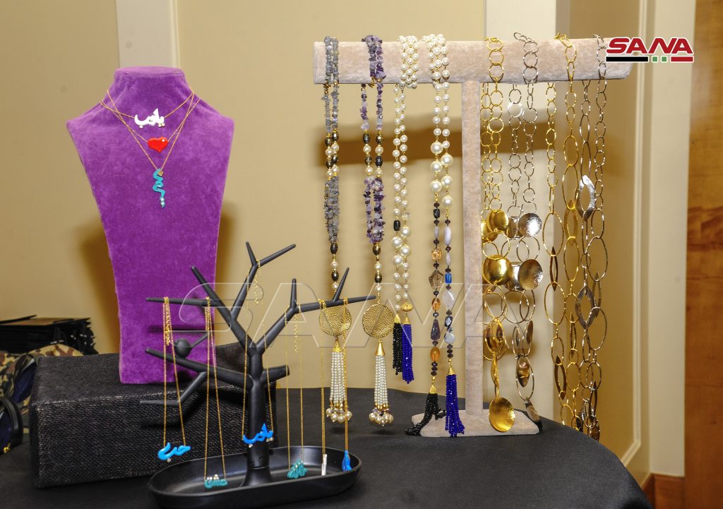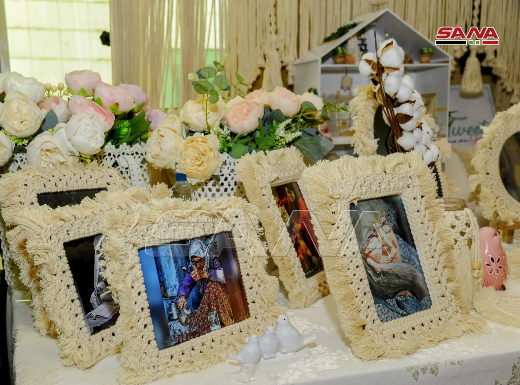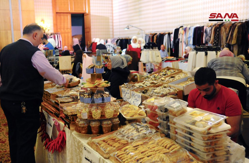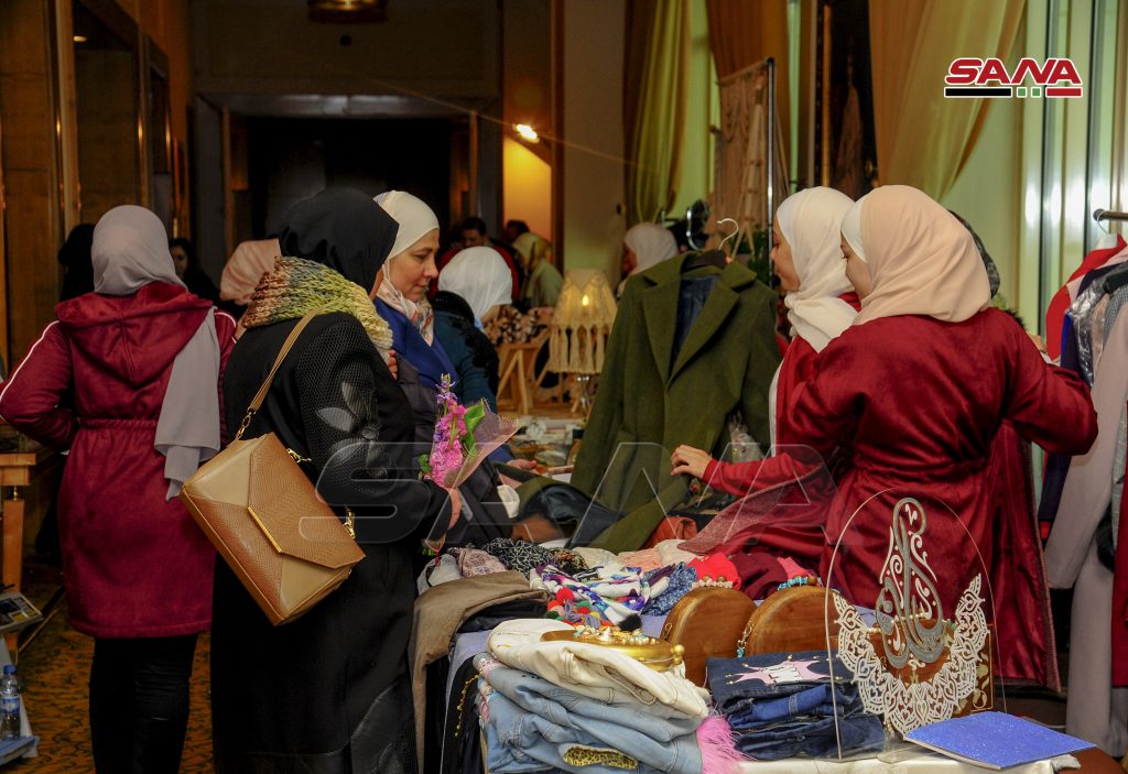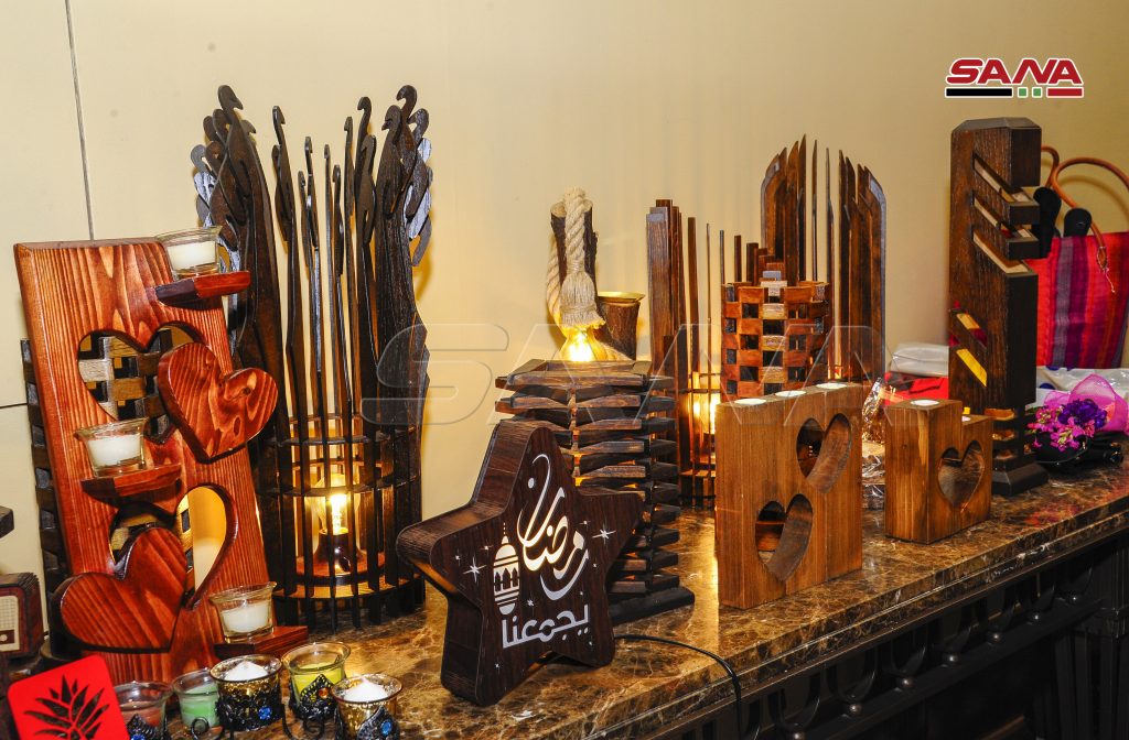 وعرض في البازار الذي يقام بمناسبة عيد الأم أعمال يدوية لمنتجات الصابون والشموع والمطرزات والإكسسوار والالبسة وتحف الزينة والخشب المستوحاة من التراث الدمشقي والتي أنجزت من قبل عدد من الحرفيات والنساء المستفيدات من دورات تمكين المرأة في عدد من الجمعيات الخيرية.