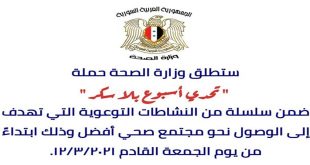 أطلقت وزارة الصحة اليوم حملة توعية صحية تحت عنوان “تحدي أسبوع بلا سكر” بدأتها بماراثون رياضي من ساحة النجمة إلى ساحة الأمويين بدمشق ضم أطباء ورياضيين وفعاليات مجتمعية ومبادرات شبابية ومشاركين آخرين من مختلف الشرائح العمرية.