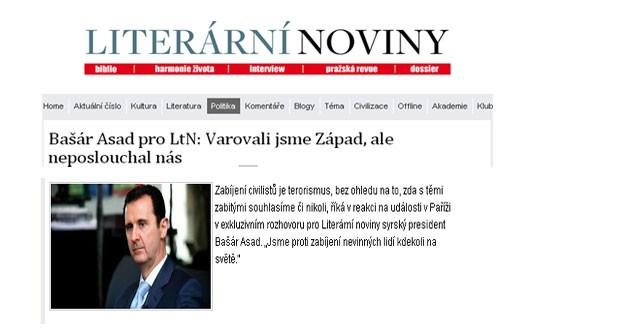 وحظيت مقابلة الرئيس الأسد مع صحيفة ليتيرارني نوفيني التشيكية باهتمام العديد من وسائل الإعلام الدولية من قنوات تلفزيونية ومحطات إذاعية ومواقع إخبارية إلكترونية وصحف مطبوعة.