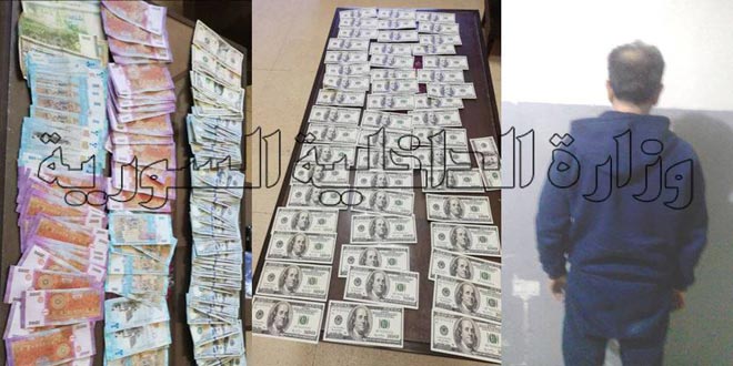 وأوضحت وزارة الداخلية في بيان تلقت سانا نسخة منه أنه ومن خلال المتابعة والمراقبة تمكن فرع الأمن الجنائي في طرطوس من ضبط صاحب مستودع أخشاب في المنطقة الصناعية يتعامل بغير الليرة السورية وبتحري مكتبه بحضور الضابطة العدلية بمصرف سورية المركزي عثر فيه على دفاتر حسابات لعمليات بيع وشراء يقوم بها المذكور تثبت تعامله بغير الليرة السورية حيث تمت مصادرة مبلغ وقدره مليوناً وأربعمئة ألف ليرة سورية ومبلغ سبعة آلاف وستمئة وعشرة دولارات.