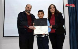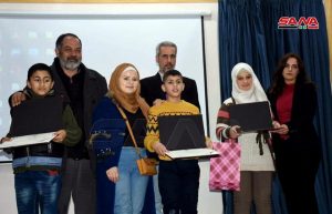 وأشار الأطفال المكرمون الفائزون بجائزة وزارة الثقافة بالخط العربي حسن سليمان وحافظ سليمان ولين إبراهيم إلى أن التكريم هو حافز لهم للاستمرار في الإبداع ضمن هذا المجال وإبراز مواهبهم.