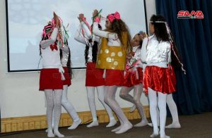 وتضمنت الاحتفالية فقرات رقص وغناء لفرقة فراشات سورية القادمة من قرية الرقاما بريف حمص والتي تضم 10 أطفال من مختلف الأعمار.