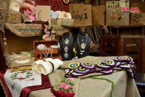 عبير عبد الصمد من جمعية رعاية المكفوفين وضعاف البصر بحمص أشارت إلى مشاركة الجمعية بالبازار ببعض المنتجات من القطع الفنية التراثية والشرقيات اليدوية من الخشب بينما تشارك علا خشفة بمنتجاتها من القطع الفنية المزينة بعجينة السيراميك بشكل يدوي إبداعي كما تصنع عطاء السباعي مختلف أشكال الصابون المعطر والملون.