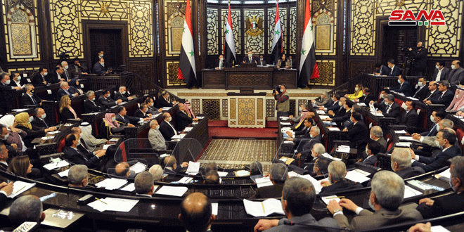 وفي بداية الجلسة وجه رئيس مجلس الشعب باسم المجلس وأعضائه تحية محبة ووفاء للسيد الرئيس بشار الأسد مؤكداً أن الرئيس الأسد الذي علمنا أن نبحث باستمرار عن عناصر مضيئة حتى في الحالات السلبية وأن نجعل من الأزمة فرصة.. ومن المحنة منحة.. وأن نستولد الأمل من رحم الألم هو رمز الشعب السوري ورمز العروبة المتأصلة وثقافة المقاومة والتحرر وحماية الاستقلال.. ولا يمكن لأي قوة كانت أن تنتصر على هذا الوطن سيد الأوطان كفاحاً وصموداً وصنعاً للتاريخ.