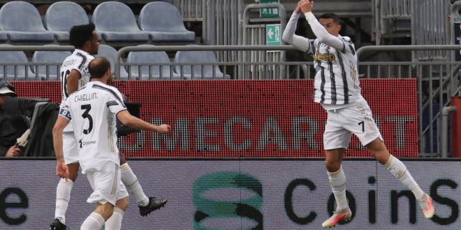 سجل كريستيانو رونالدو ثلاثية يوفنتوس “هاتريك ” بالدقائق 10 و25 من ركلة جزاء و32 بينما سجل جيوفاني سيميوني هدف كالياري الوحيد بالدقيقة 61 من عمر المباراة.