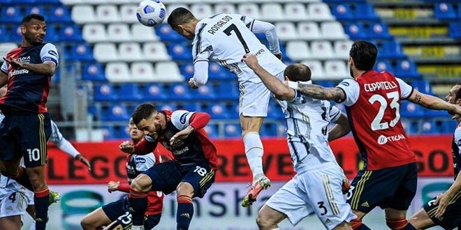 وذكرت شبكة سكاي سبورتس اليوم أن رونالدو سجل ثلاثة أهداف ليوفنتوس في الشوط الأول على مضيفه كالياري وذلك ضمن مواجهات الجولة الـ 27 من منافسات الدوري الإيطالي الممتاز للموسم الحالي 2020-2021.